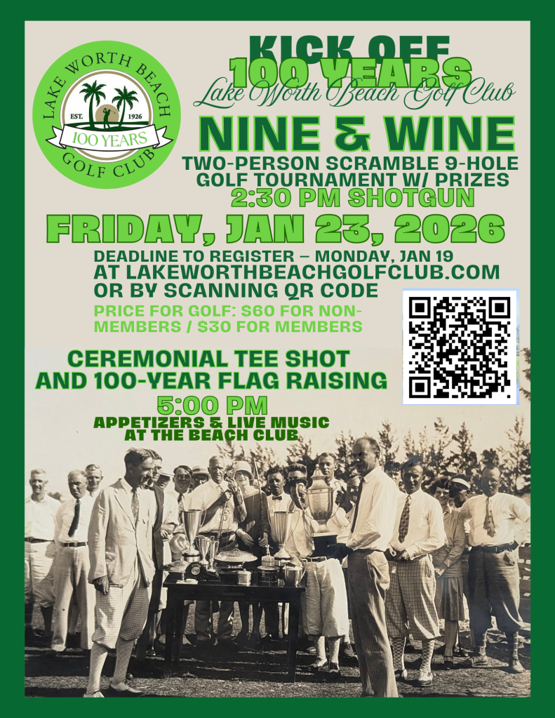 100 Years Event Home 100 Years Event 9 and Wine Entry Form Below⬇️ Please enable JavaScript in your browser to complete this form.Date of Tournament: Friday, January 23rd Time: 1:30pm Registration/ 2:30pm Shotgun Start Entry Fee: Payment at Registration – Day of Tournament $60 Non-Members / $30 Members (includes Golf and Tournament) Golf Format: 2 Person Scramble Sign-up Deadline: Monday, January 19th –entries close at first 60 players Name *FirstLastPhoneEmail *Golf Handicap, or Average 18 Hole Score * Partner Phone Name Playing Partner for the Tournament *Submit